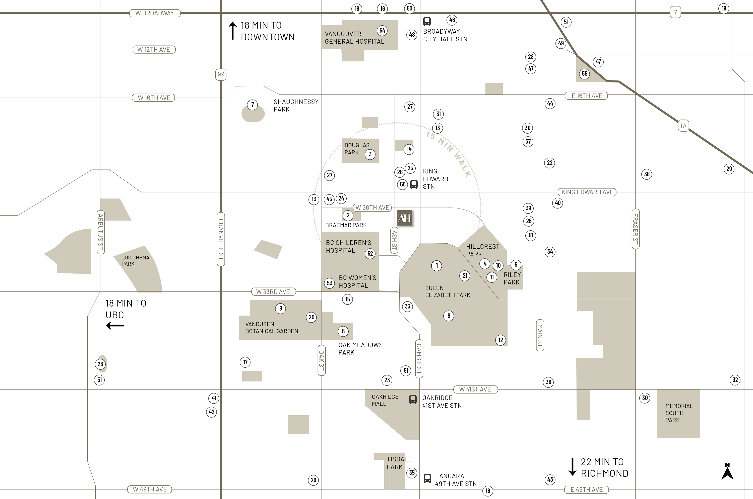 Steps away from Queen Elizabeth Park, VanDusen Garden, Hillcrest Community Center, and King Ed Transit Hub. This vibrant, walkable neighborhood blends urban convenience with natural beauty, offering residents easy access to parks, shops, cafes, community center, and rapid transit.